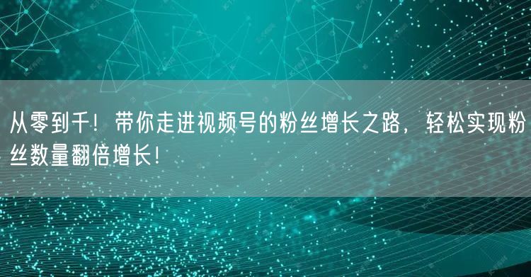 从零到千!带你走进视频号的粉丝增长之路,轻松实现粉丝数量翻倍增长!